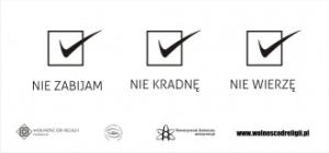 Os anúncios gigantes que começaram a aparecer nas principais cidades da Polônia mostram uma série de quadradinhos com as opções “não matar”, “não roubar”, “não acreditar”. Todas as opções estão marcadas. Outro outdoor faz a pergunta: “Não acredita em Deus?” E dá a resposta: “Você não está sozinho”.