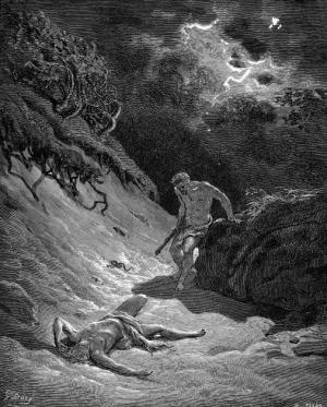 Caim disse então a Abel, seu irmão: “Vamos ao campo.” Logo que chegaram ao campo, Caim atirou-se sobre seu irmão e matou-o.