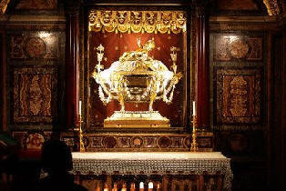 Relicário com a manjedoura do Menino Jesus abaixo do altar central.