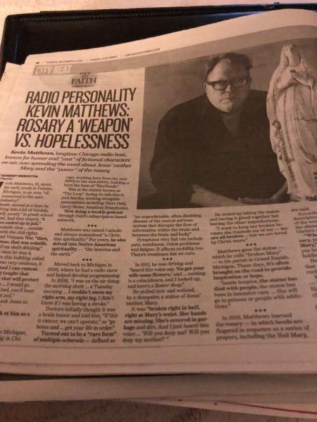 Uma peculiar devoção mariana vem surgindo e se consolidando em Chicago, nos Estados Unidos, desde que, em 2010, o localmente muito conhecido locutor de rádio Kevin Matthews encontrou no lixo uma imagem de Maria quebrada ao meio. Ele a levou para casa e tentou restaurá-la.