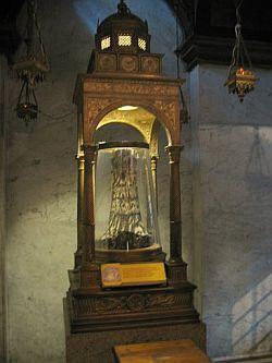 Em uma pequena capela, nos fundos da igreja, estão expostas essas preciosas relíquias. São elas: