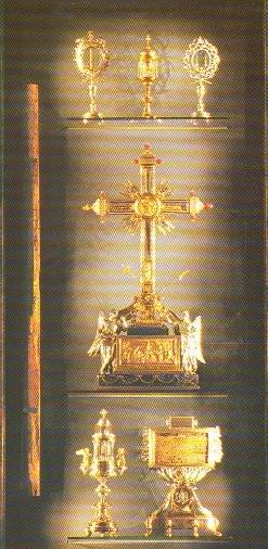 da coluna da flagelação, um dos cravos, o dedo de S. Tomé,  uma parte da Santa cruz,