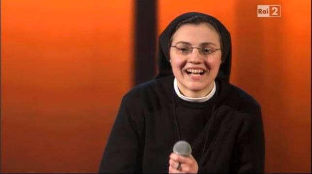 E foi isto o que fez a irmã ursulina Cristina Scuccia, (abaixo)  de 25 anos de idade. Primeiro, ela venceu a edição italiana deste ano do concurso musical “The Voice”. Depois, ela fez o impensável: “Eu quero que Jesus entre aqui”, declarou ao público, levando a plateia toda a rezar um pai-nosso televisionado.