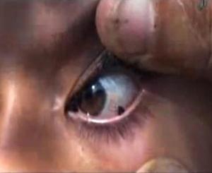 No vídeo, publicado no YouTube pelo canal de TV do Iêmen Azal, os doutores mostram dezenas de pedras que saíram dos olhos de Saadiya Saleh em apenas algumas horas.