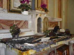 De acordo com a agência Asia News, os terroristas destruíram uma imagem da Virgem Maria, e, em seguida, atearam fogo ao altar a fim de profanar a Sagrada Eucaristia.