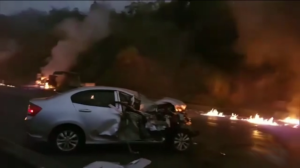 Imagens de câmeras de segurança de um restaurante à beira da rodovia federal BR-277 mostram o instante em que um homem arranca e atira seus sapatos em chamas ao meio da pista e, segundos depois, é tragado pelas labaredas assassinas.