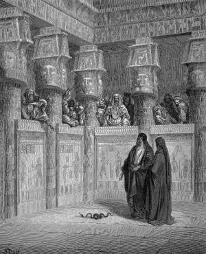 Tendo Moisés e Aarão chegado à presença do faraó, fizeram o que o Senhor tinha ordenado. Aarão jogou sua vara diante do rei e de sua gente, e ela se tornou uma serpente.